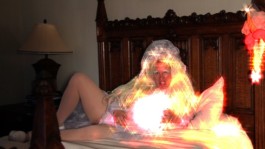 Goyette creates persona-based works that poke holes in Puritanical sexual mores. Her latest alter ego Ghost Bitch is an apparition of her direct ancestor, Rebecca Nurse who was hanged as a witch in the Salem Witch trials of the late 17th century. Ghost Bitch is a history-reenacting aerialist who gets hanged each day and is a dominatrix by night, as part of an enterprising coven serving tourists in Salem, Massachusetts. Role-playing history for public consumption on stage and for intimate purposes proves challenging to Ghost Bitch. Goyette’s internal question manifests through the lens of Ghost Bitch: How do we protect ourselves from being metaphorically hanged and repeating our traumas in ghost form?