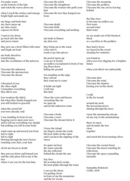 Samantha Bohatsch (born 1984, Berlin) lives and works in Berlin. She studied in Karlsruhe (D) with Prof. Silvia Bächli, in Vienna with Prof. Heimo Zobernig and in Berlin with Prof. Else Gabriel and Michaela Meise. She was Silvia Bächlis Meisterschülerin at the State Academy of Fine Arts Karlsruhe. Bohatsch works with reading performances, sound pieces, texts, prints and installations. Her works are about fictional female protagonists who are confronted with internal or external resistances and try to overcome them. They are hybrids of personal experiences, observations from the internet, queer and feminist literature, history and pop culture. Bohatsch's work has been presented in solo and group exhibitions at institutions including CAN, Neuchâtel (CH); Bob's Pogo Bar/ KW Institute for Contemporary Art Berlin; Forum Stadtpark, Graz (AT); Kunstverein Reutlingen (D); o.T. Raum für Aktuelle Kunst, Lucerne (CH) and Kunsthalle Basel. She has been honored with artist fellowships by the Federal State Baden-Württemberg (D), the Arts Foundation Baden-Württemberg (D) and the German Academic Scholarship Foundation. Her mixed media installation CORE (2019) is a walk through centuries, through the woods and the lakes, reaching the depths of the unconscious and dreams. It deals with (re)birth, ever-changing and commutable bodies, the loss of landmarks and finding the way home.